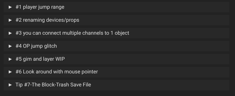 Okay, NICE guide! You may wanna put the beginners-must-read tag on this, because there really IS some helpful stuff in here. So far, I only owe you 2 chocolate bars. One for the jumping glitch, and one for the “multiple channels at once,” which is SOOOOO helpful! I’m sick of wasting memory on like 15 different lifecycles to activate all my systems, so now I only have to use one!