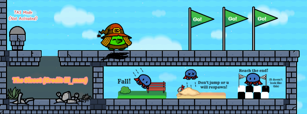 like some stuff to jump on, or a game guide like the game modes have. also some teleporters that lead to a credits room and a game log.