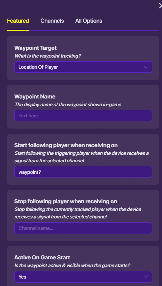 waypoints are usually set to a fixed area, where the waypoint is. I think you can use player coordinates? I’m not sure though. All I know if that the waypoint will point where the device itself is.