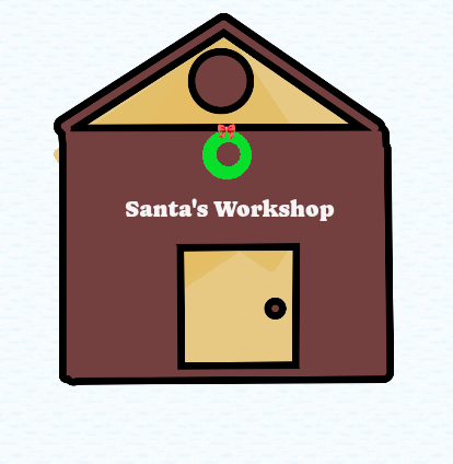 Get another text box and enter “Santa’s Workshop” into it. Change the font and color however you want. Then move it to the house. AND MAKE SURE TO LAYER IT ABOVE EVERYTHING!