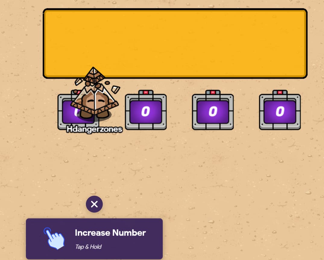 4 buttons (all invisible). Button message can be whatever, I used “Increase Number”