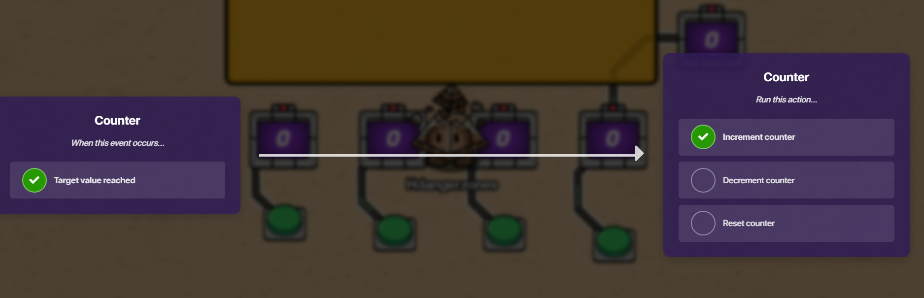Repeat those steps to the other three counters. On the last invisible one, set the target to “4”.