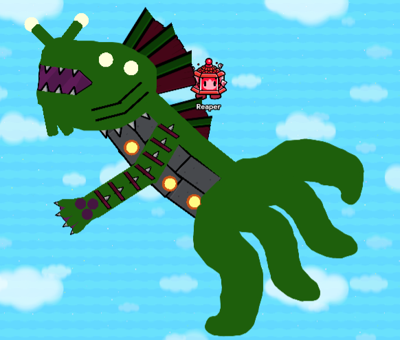 Abilities: Fire breath: a ton of sentries in it’s head will sh00t rare slingshots at the player, and if you get to close to the mouth it will eat U