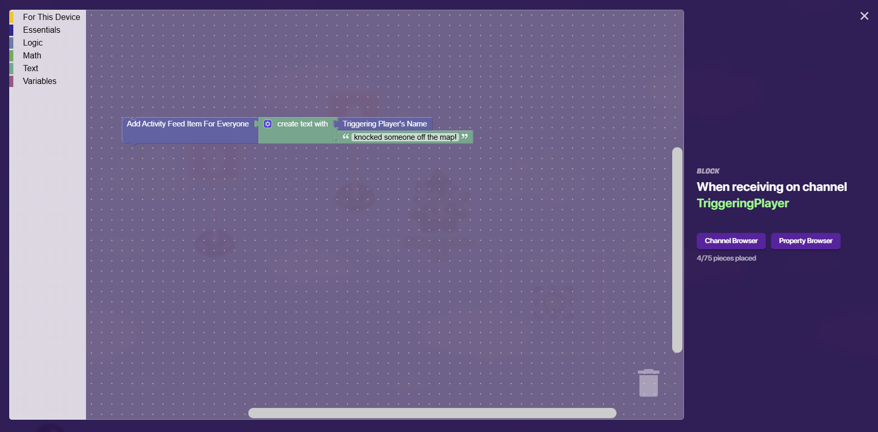 I mean, technically, TECHNICALLY you could put them both in one activity feed message if you store the name of the last knocked out player and the last player who knocks out and then put those properties in an activity feed but it would be kinda buggy and probably not work.