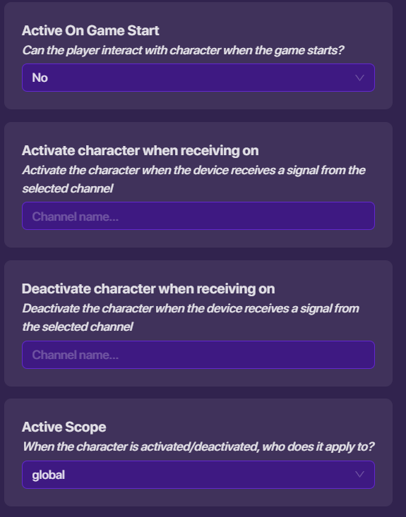 Hello, I know I haven’t been on this for awhile but I’ve been working on my game that relies on the characters being deactivated. I know you can do it in the panel and I set active on game start to false except when I playtest the game the characters are not deactive whatsoever you can see them.