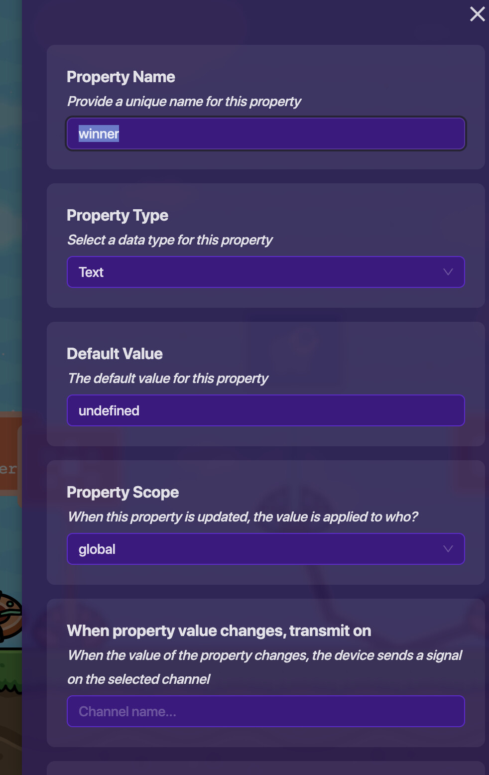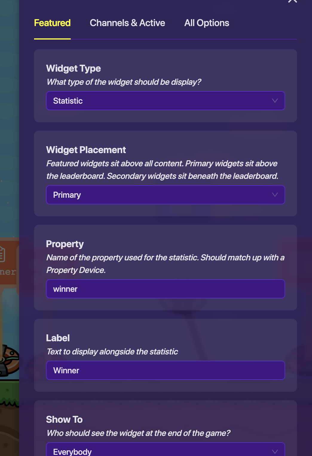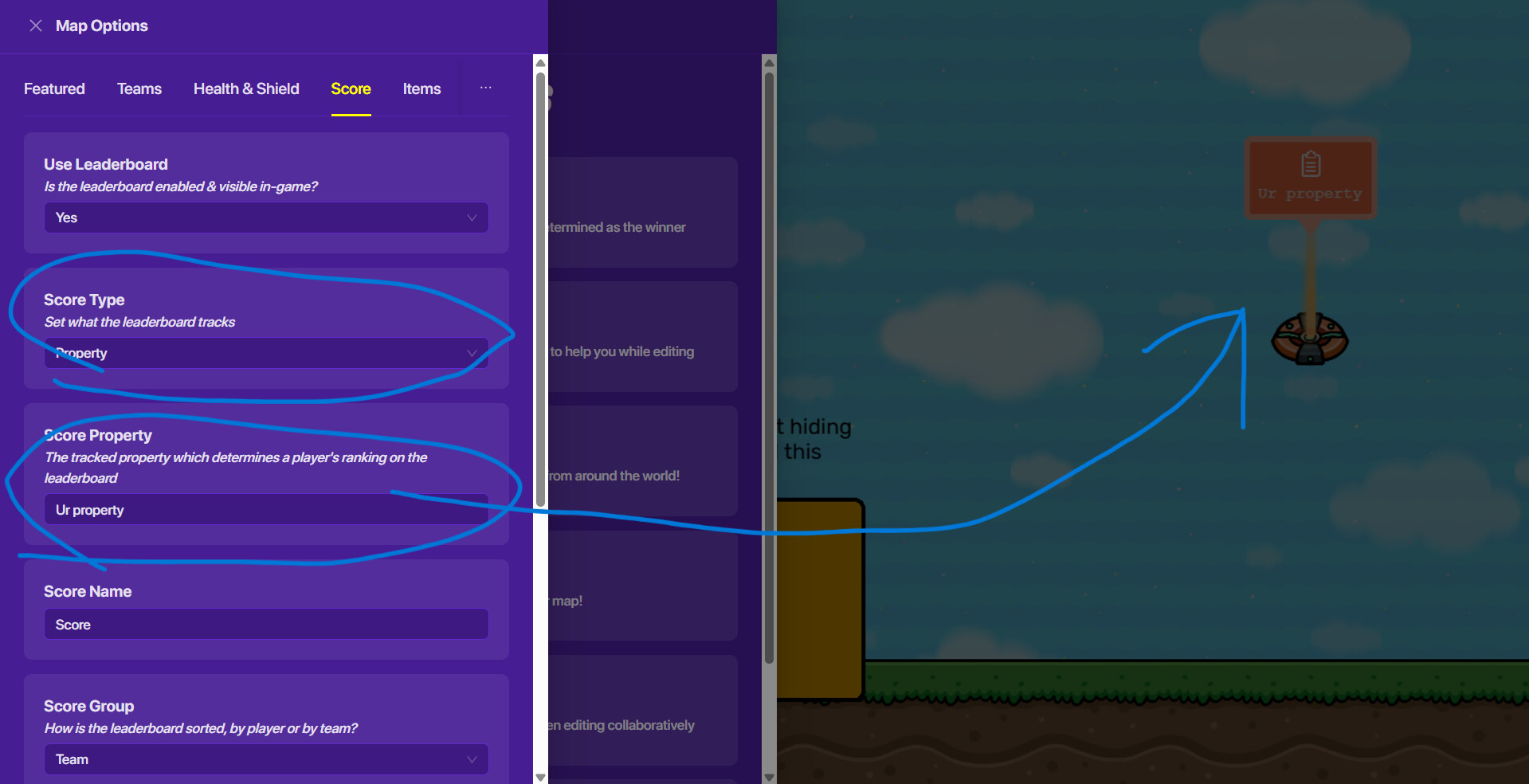 but i don’t want it to be leaderboard. I want it so that it just displays the property at the end of the game