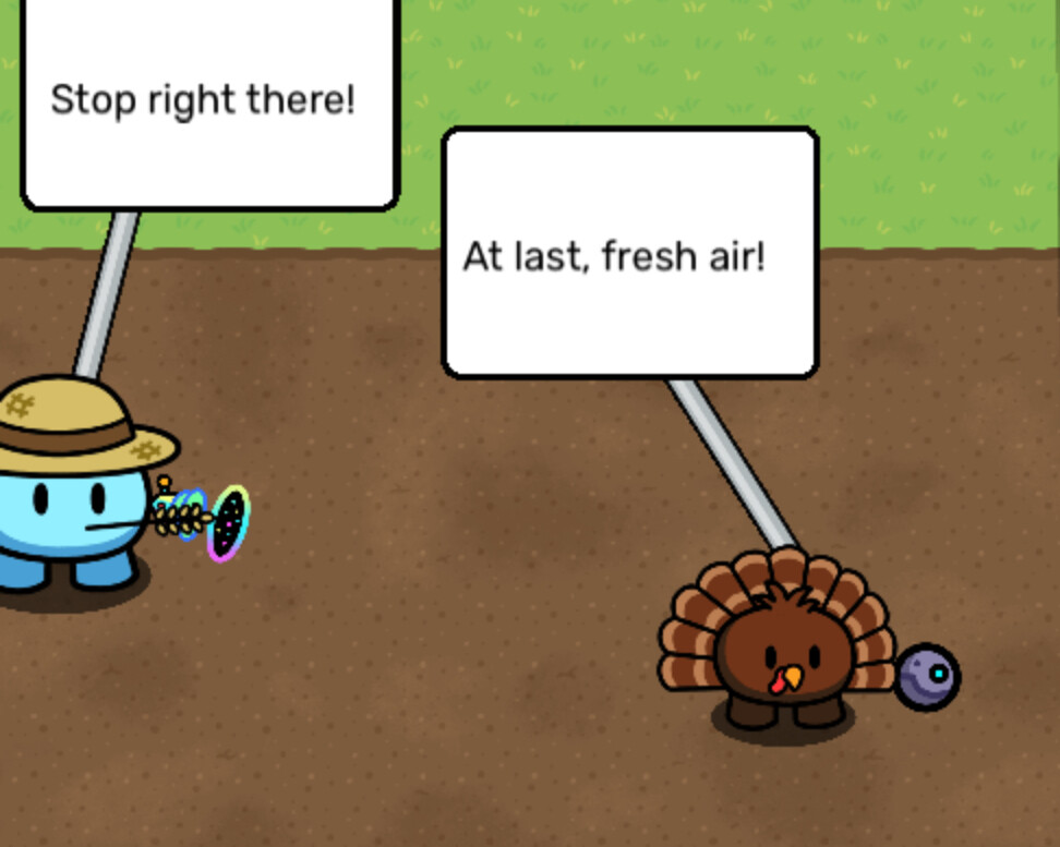 So the movie title, “The Turkey’s Greatest Escape,” refers to Gobble escaping the norms his father hold on how he should behave. Oh, and Mash is the 3rd wheel/watchman for most of Gobble and Feast’s dates/outings.