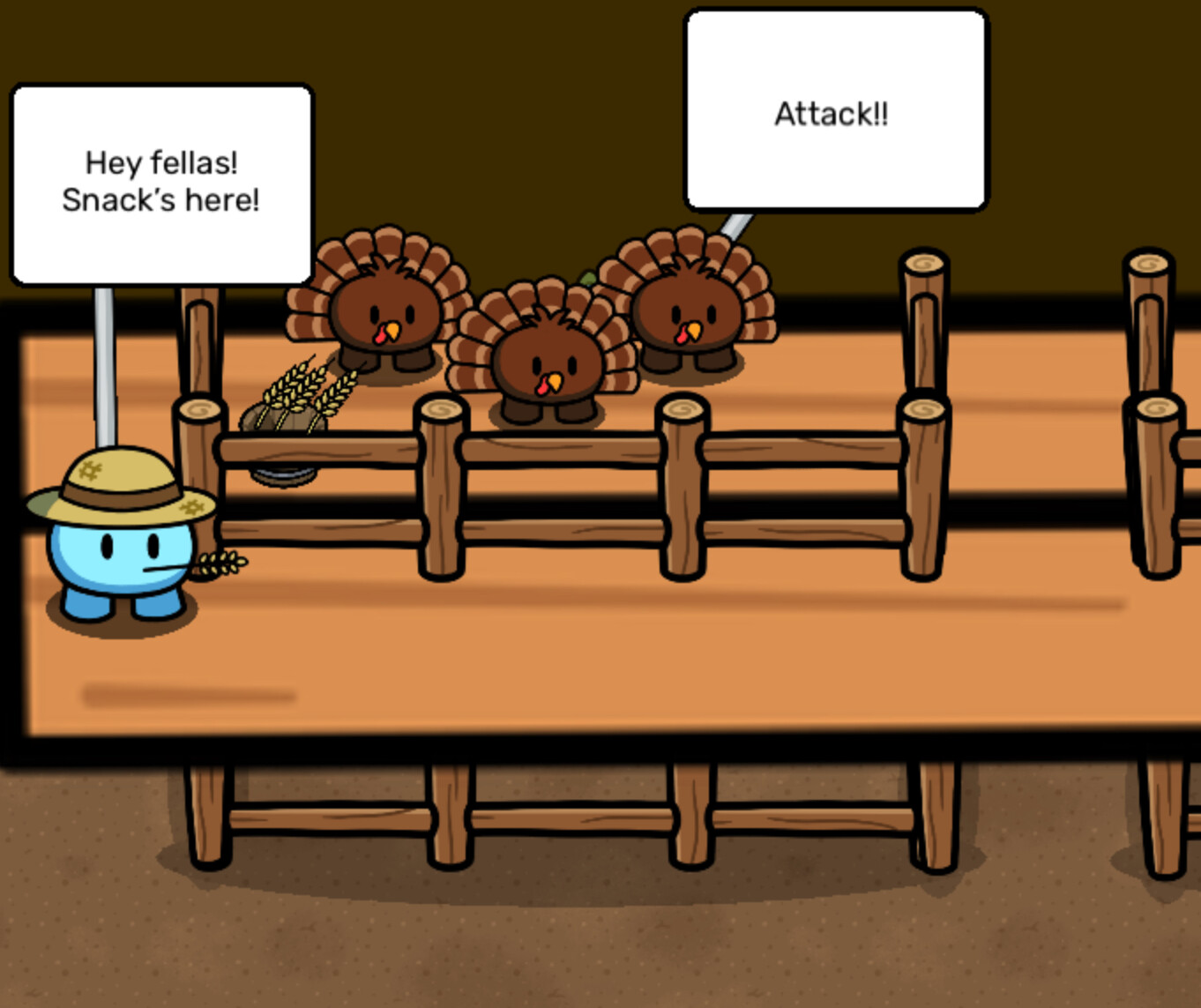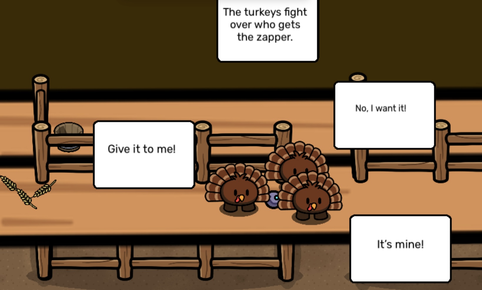 So, Gobble ‘n’ Feast’s families have a rivalry going because of something that happened a bunch of generations back. Gobble and Feast were continuing that rivalry, but they fell in luuurve
