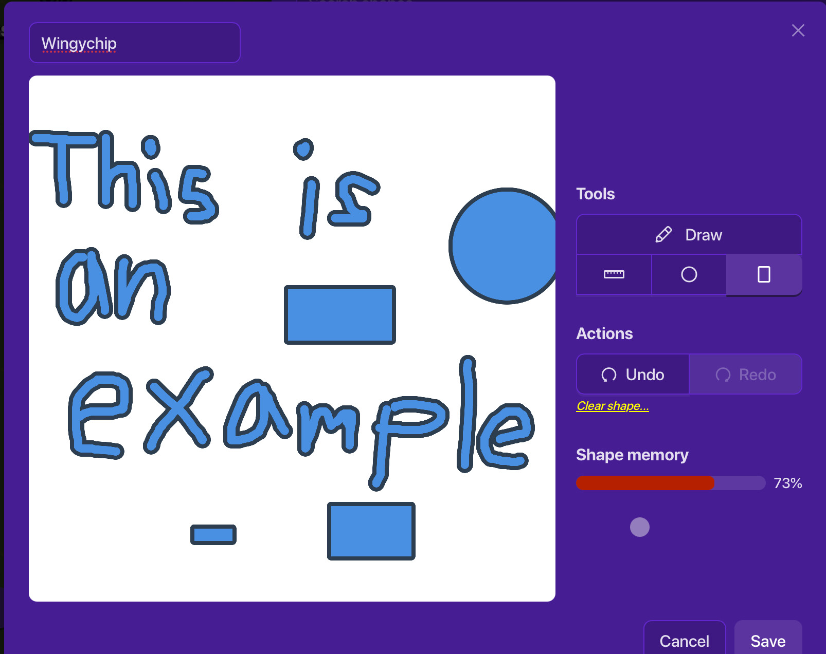 Here, you can draw whatever you want, but please note that each thing consumes a somewhat substantial amount of memory. You can rename your shape in the top left corner of the interface.