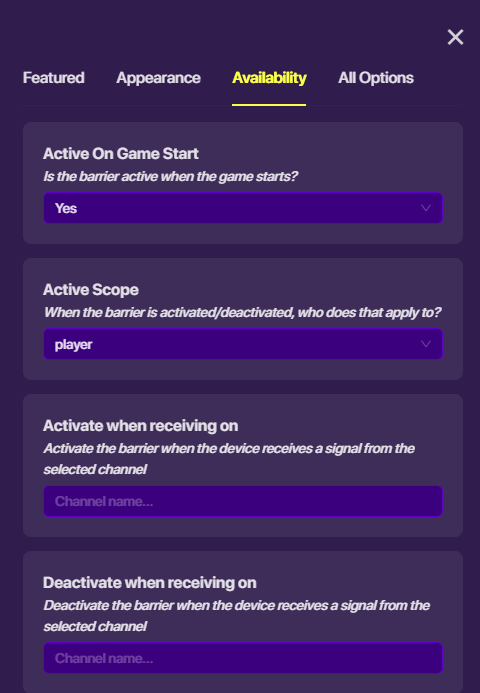 Barrier settings: