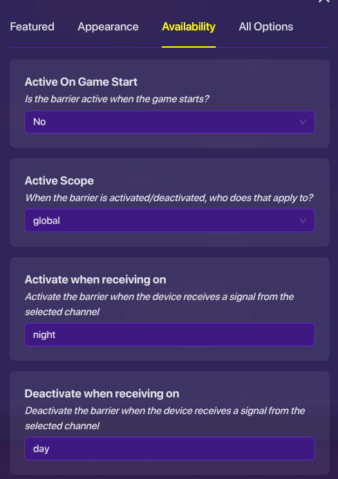 Set “Trigger when receiving on” to “night” or whatever you put for Night.