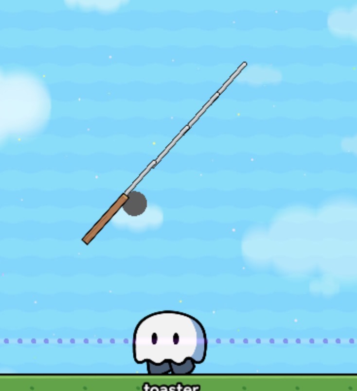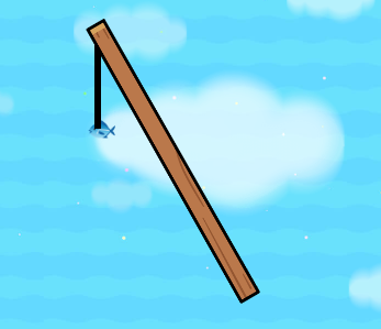 metal pole, wood aranged as a bow, line (metal pole), and fish emoji as text