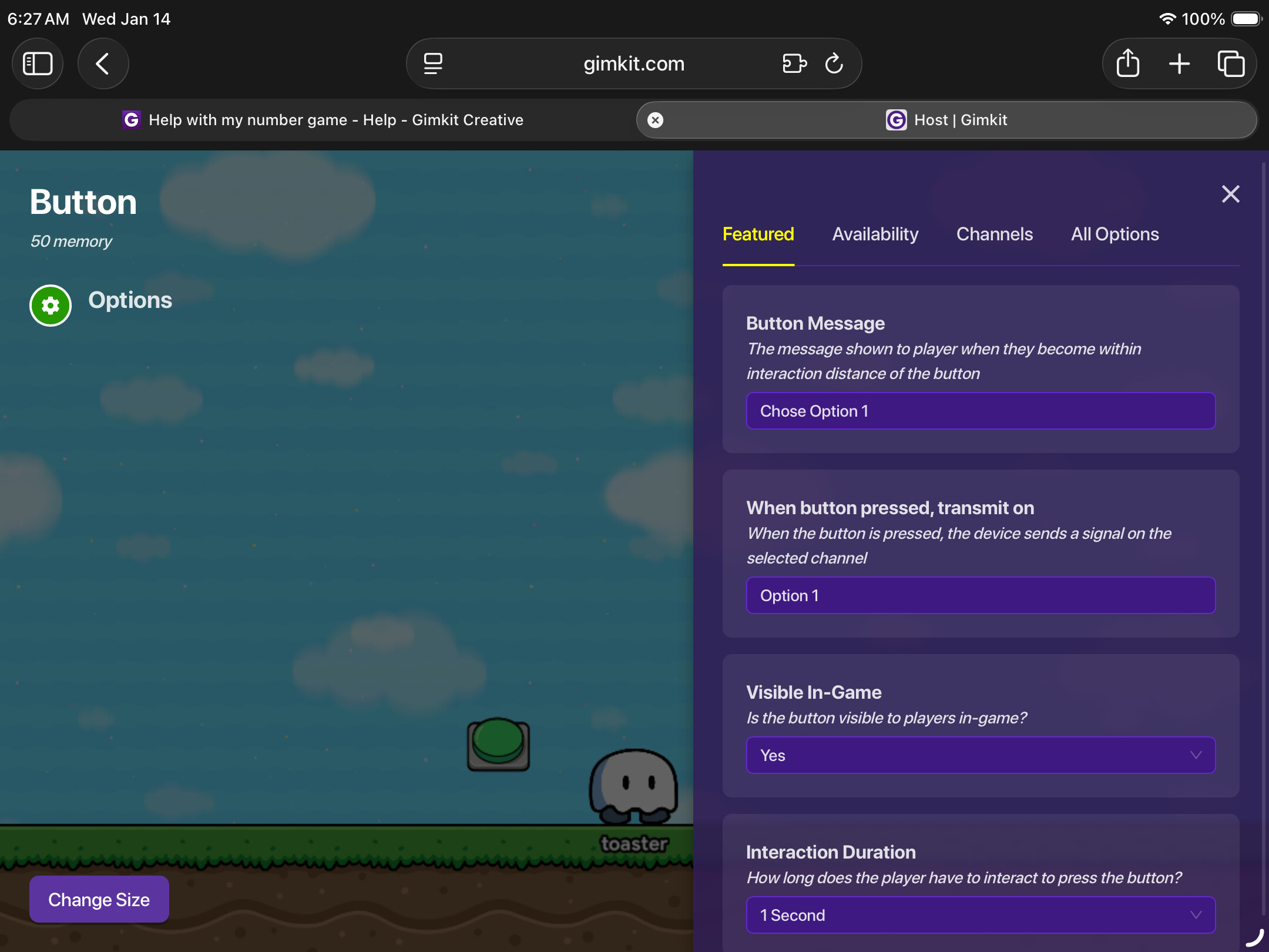 I am trying it to remember the number it presses and remembers it and if it the same number the rng guessed then it gives them somthing
