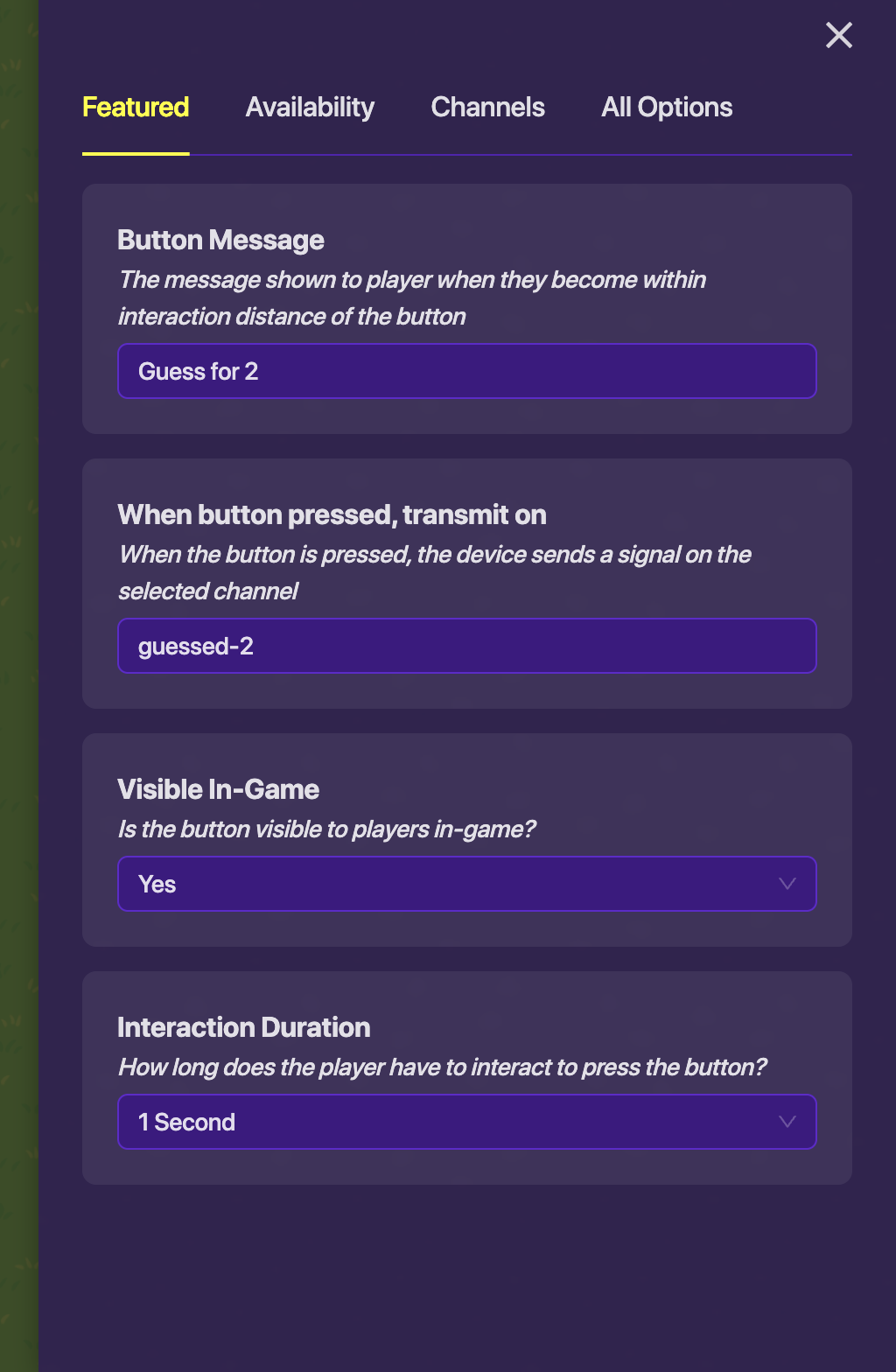 for each button and then set a trigger to recieve for each guess. then set variable RNG-Guess to random 1-3 ( in the blocks ) and then if RNG-guess = the guessed number by player send on channel rng-guess-correct and do an inventory granter for rng-guess-correct