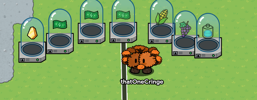 Oh the coding part basically chooses a random integer from 1-100. If the number is less than or equal to 30, it grants money. However, if its greater than 31 but less than 40, it will grant corn, so on and so forth.