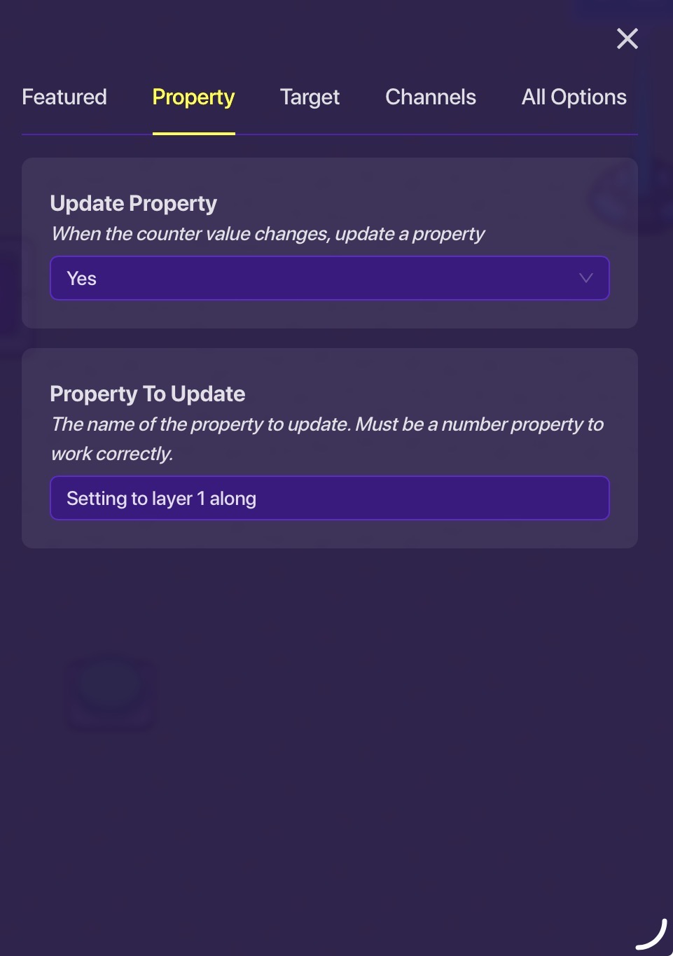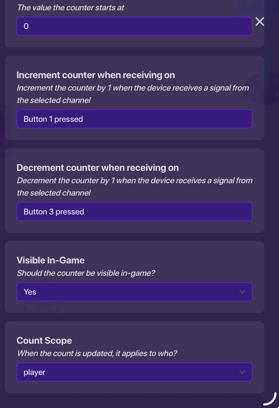 The middle button is to guarantee the choices, more on that later. The left counter for the Y axis has these settings.