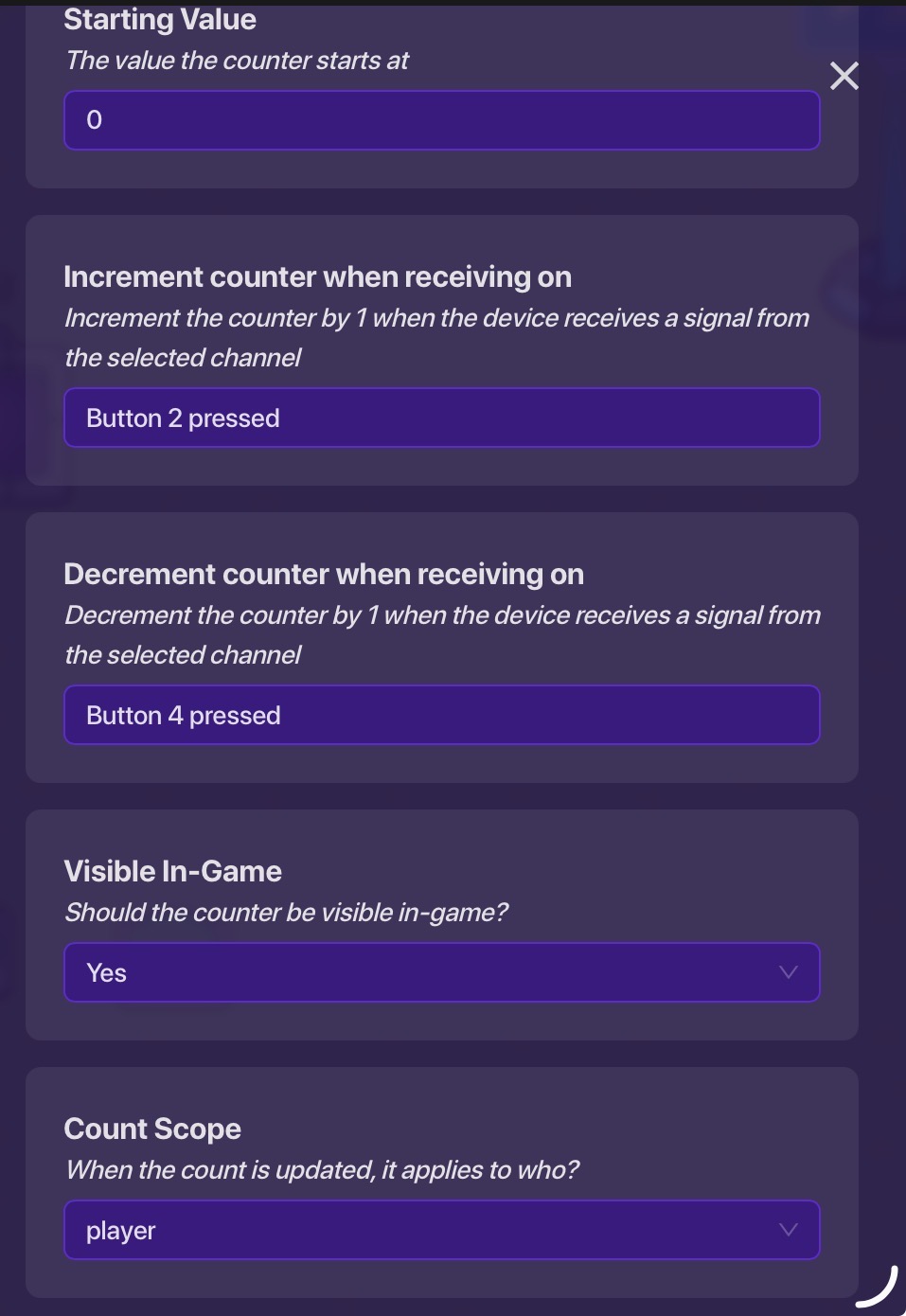 Then create these 4 buttons, the ones on the left are increment, decrement and same with right. For this, 1 is on the right increment and 2 is left increment and 3 is right decrement and 4 is left decrement.