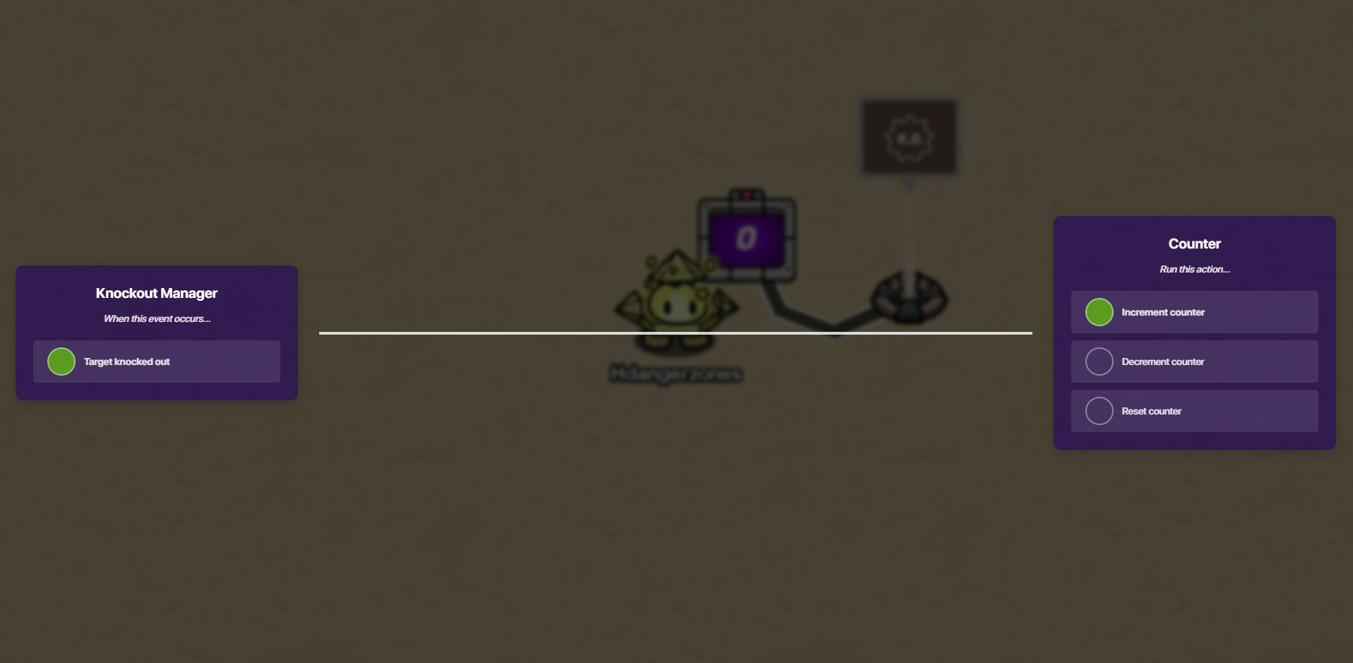 Lifecycles can detect when a player is knocked out. Link one to a relay(Set to the team that the counter is counting for), and then to the counter.
