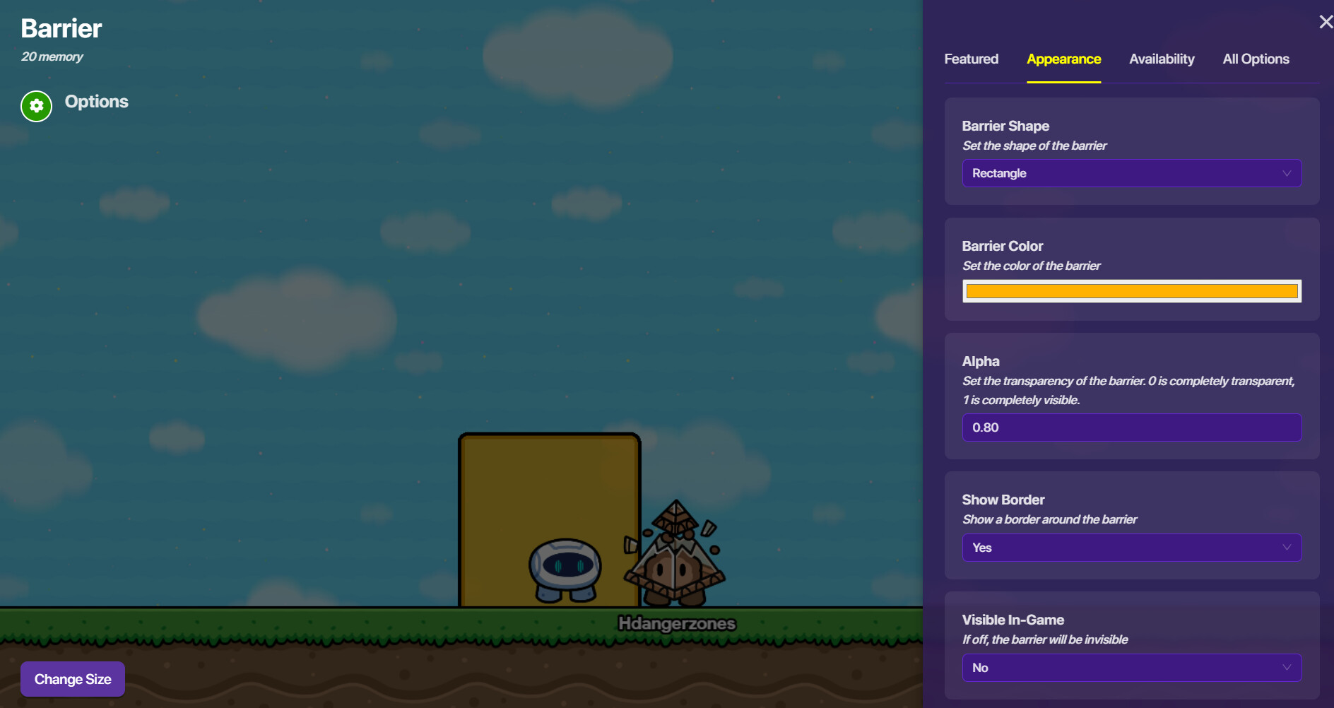 Or, place down a barrier device, navigate to “appearance”, and scroll to the “Visible In-game” section. Select “No” to make it invisible. Then, place it around the sentry.