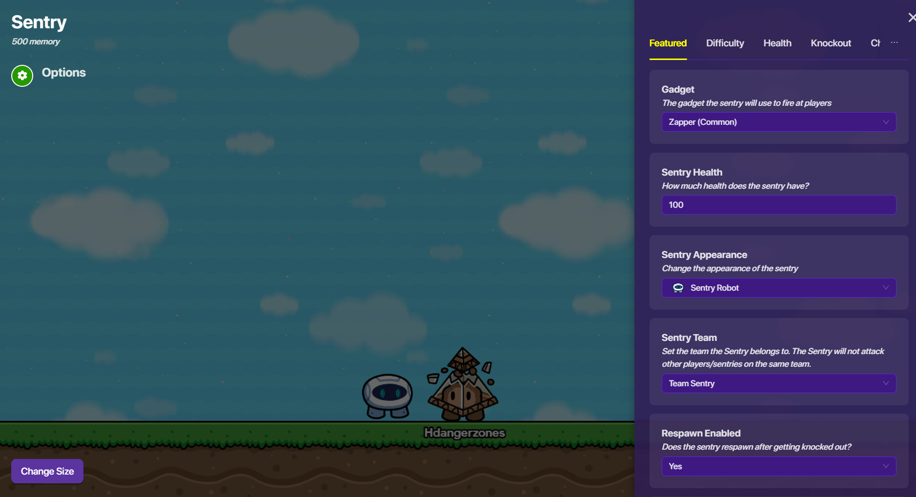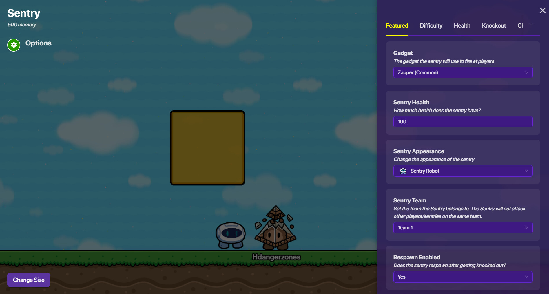 To make sure it doesn’t target players, you can go into the “Sentry Team” section and select “Team 1”. If you’re on Team 1, it won’t target you.
