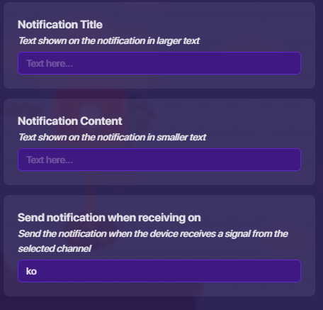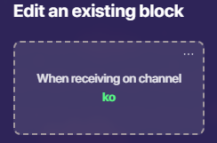 use this code. put it in a notification’s block “when recieving on channel ko”