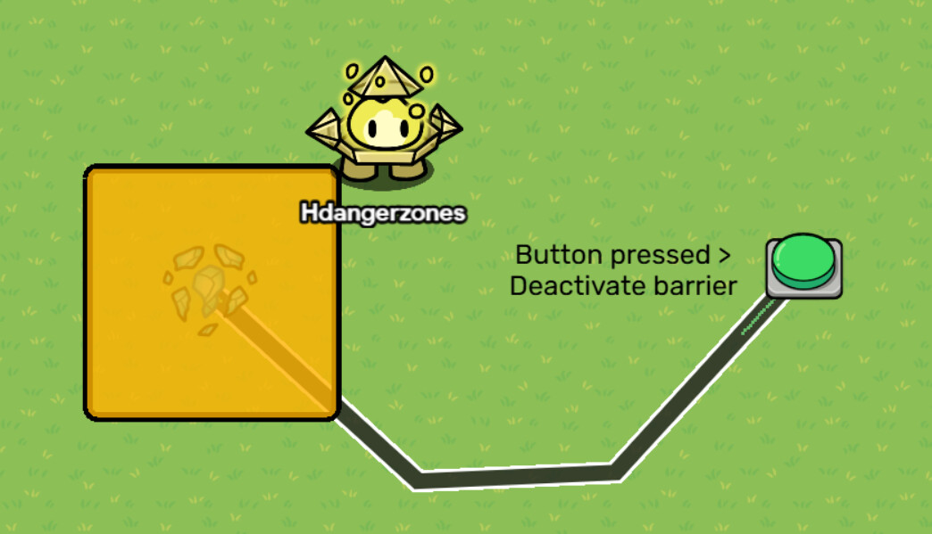 When the button is pressed, it transmits on LockButton, and the button also deactivates when receiving on LockButton. This way, it can only be pressed once, therefore allowing only one team to have the barrier deactivated, and having access through that.