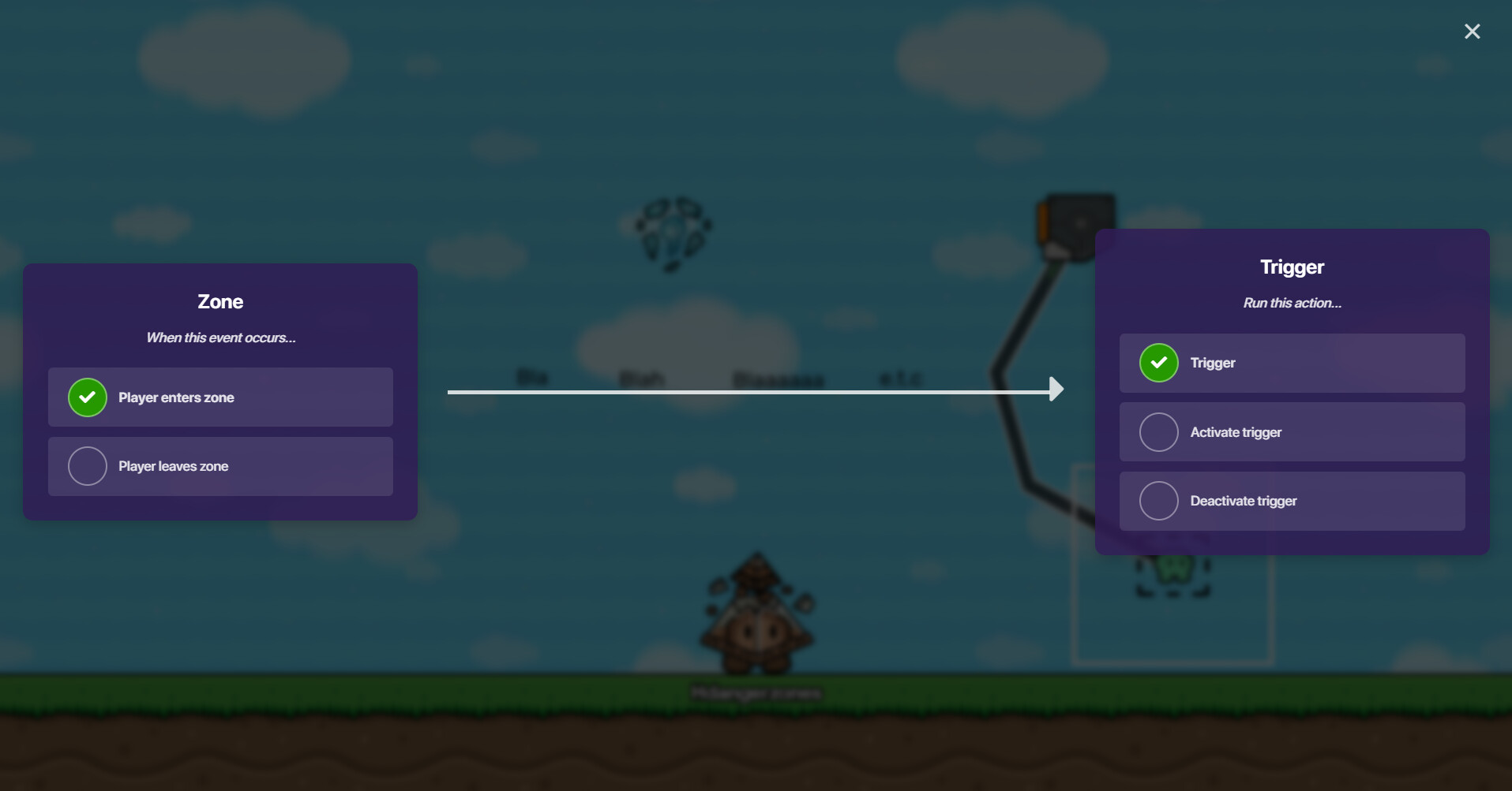 The wire on the top trigger comes from the zone, and it’s supposed to trigger when I enter the zone.