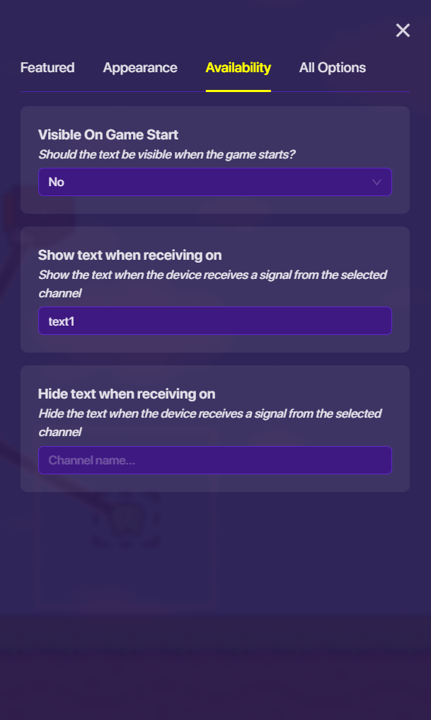 Under the “Show Text When Receiving On” menu, put in “text1” (or something like that, I’m just doing it for organization purposes lol)