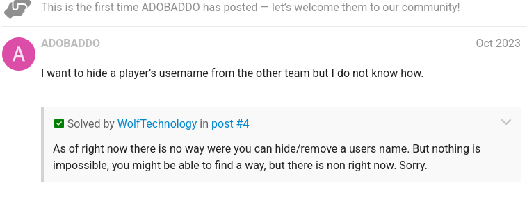 You guys are making this really complicated for no reason. Hide nametags as in the Gimkit nametags, that’s the question.