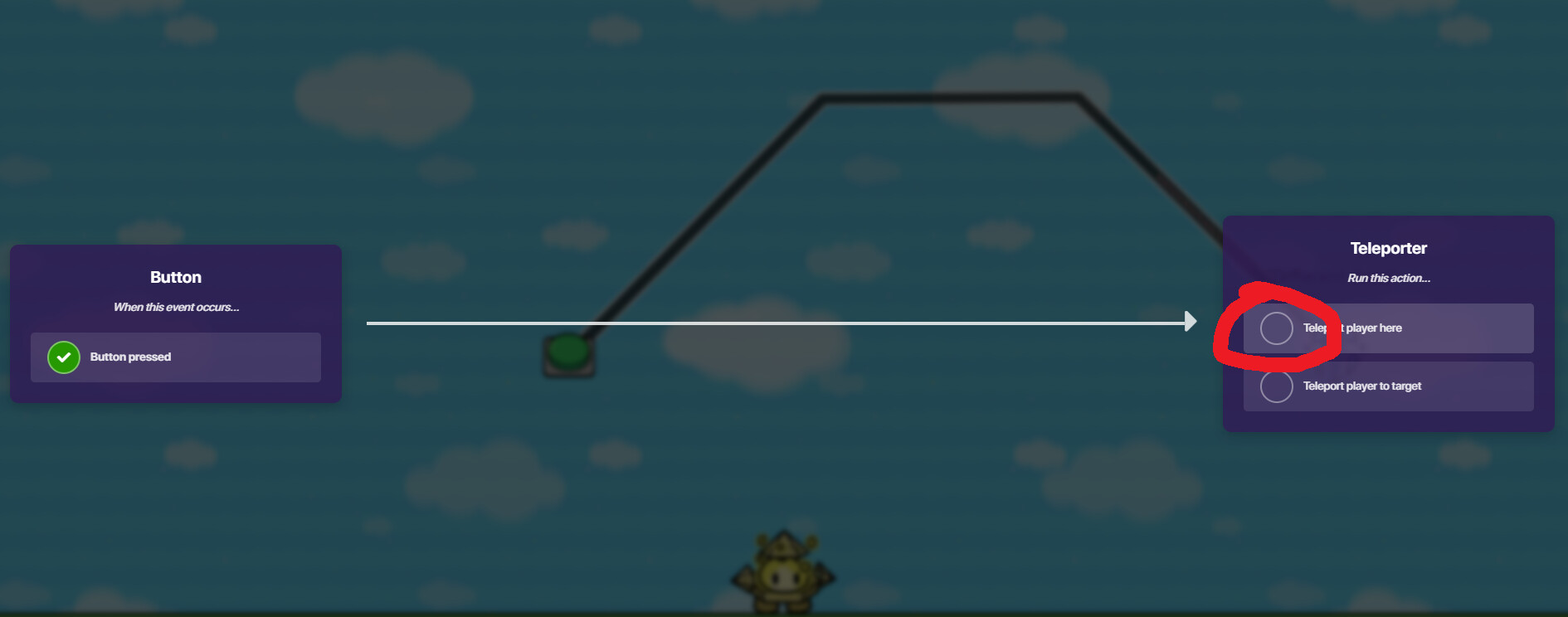 Using buttons and teleporters… (So when you click a button named “Blast Fireball” that’s connected to a teleporter, you “bounce” to a different area)