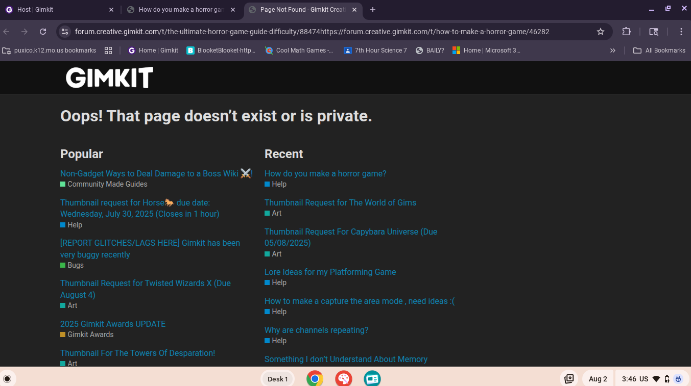 Also please hide your bookmarks bar next time, it’s leaking your school location. To do this press ctrl+shift+b