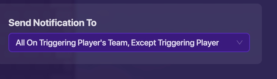 When notification sent damager goes to all non triggering players as 100 damage and team 2 is damaged and team 1 is triggerer
