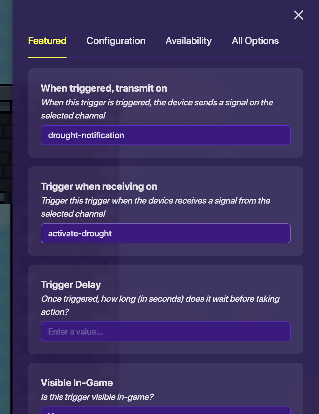 so i set the trigger to broadcast drought-notification