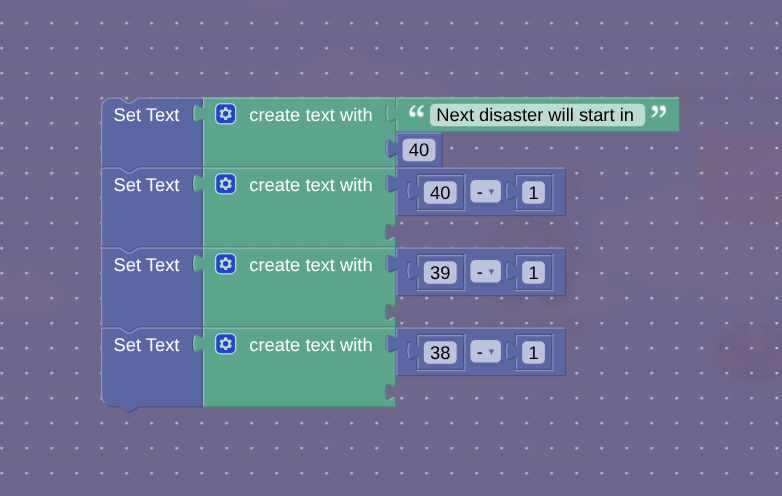 No, that’s not what I meant. What I meant is that I don’t know how to make a timer that waits every 1.0 before a decrement cause If I do this for example, 40-1,