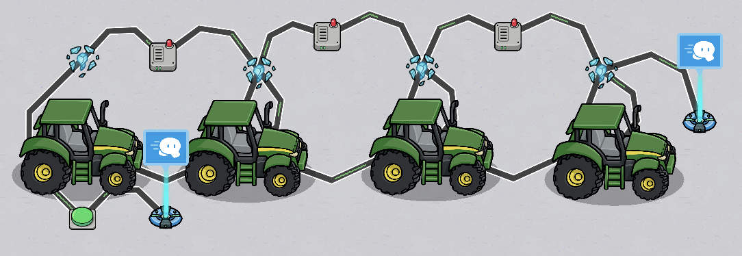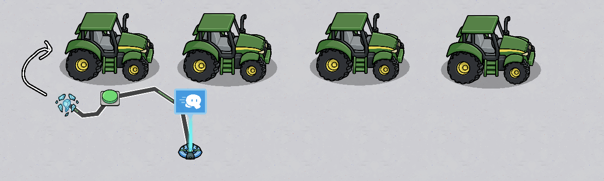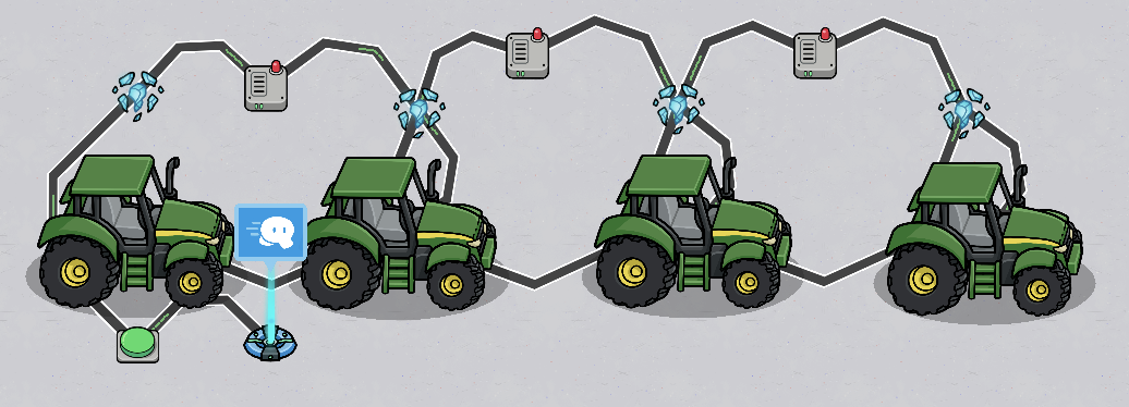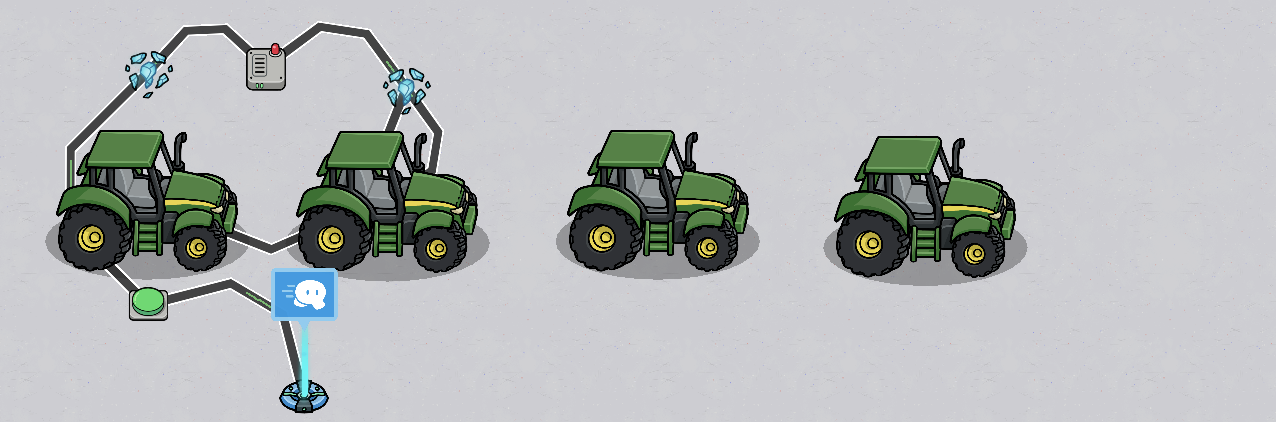 optional If you want to ride this car multiple times, wire the button so that the first car appears and the last car dissapears.