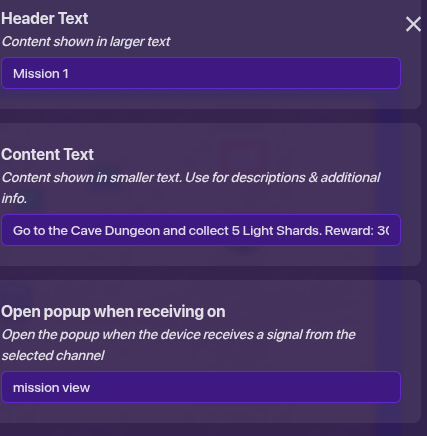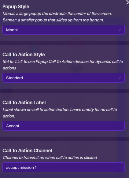 Set the popup to whatever you want your mission to be, the rewards, and an accept and decline call of action.