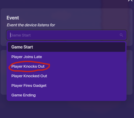 Use lifecycle “player knocks out” (instead of knocked out).
