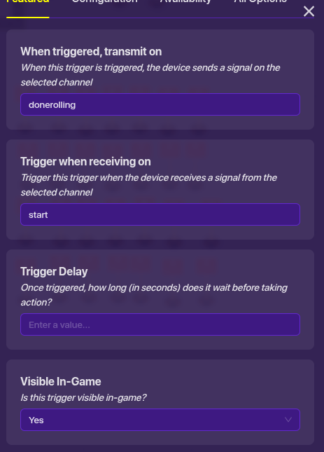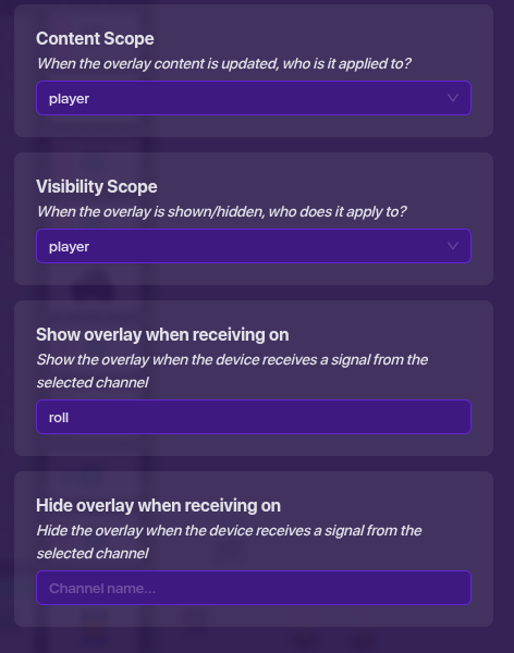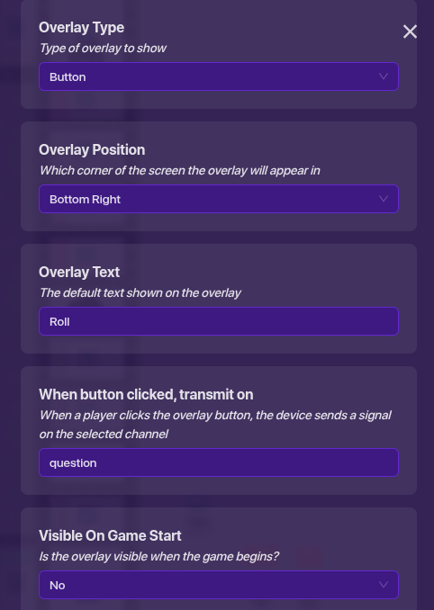 Finally, go to the game overlay button that says roll, and make it not visible at start, and set it to show when receiving on roll. That’s it!