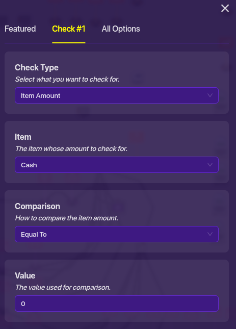 Now this is not advanced at all, but it uses something from a advanced mechanism, so I put it down here. Remember the lifecycle we used back from the player counter. Well, wire that to a wire repeater. Then, wire that wire repeater to a checker. Now, wire that checker back to the wire repeater so that when check fails> pulse. Then wire the checker to the team switcher that was used from the relays, so that they switch to spectator. Finally, make sure the checker has these settings: