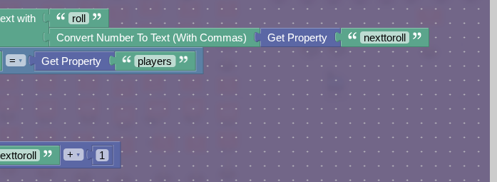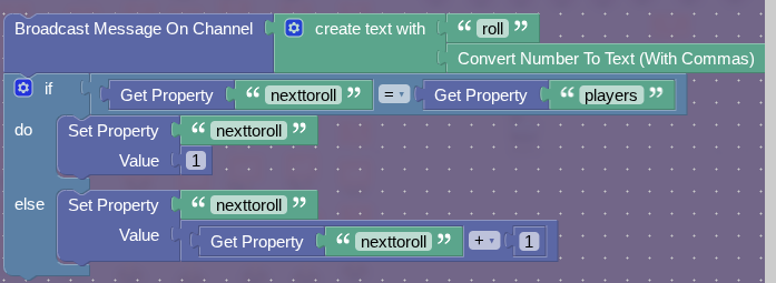 First, go to the game overlay and change it from broadcasting yourolled to goroll. Then, go to the notification device and remove the set property rolled and alsorolled. Get an item granter and when receiving on goroll. (In the screenshots I made the mistake of using a trigger.) Now, make this in blocks: