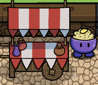 I’ve got more stuff. Maybe a food stand that sells potato poppers. But it has a secret, there’s a one in a hundred chance to sell you a potato popper that explodes! That means that you get a special potato plushie to keep.