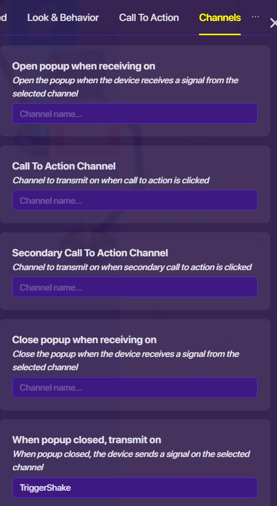 I used a popup, and made that transmit on TriggerShake