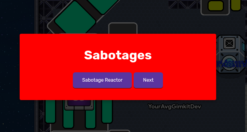 Before we start, You should make a sabotage interface using a Game Overlay and Popup.