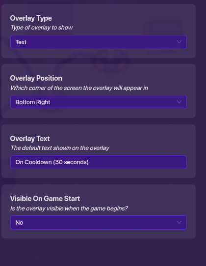 Get overlay2 down with these settings: (Make sure scope is player and the 30 seconds means how long until you get the 1st overlay again)