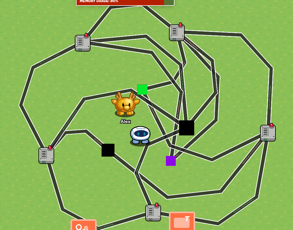 The Wire Repeaters are each wired to some of the Custom Shape devices, that way it isn’t just everything appear → everything disappear. Make sure there’s something to start the loop, like an On game start Lifecycle Device. If you don’t want the Sentry to attack, set it to the same team as the player, or put a solid and invisible barrier over it if there are multiple player teams.