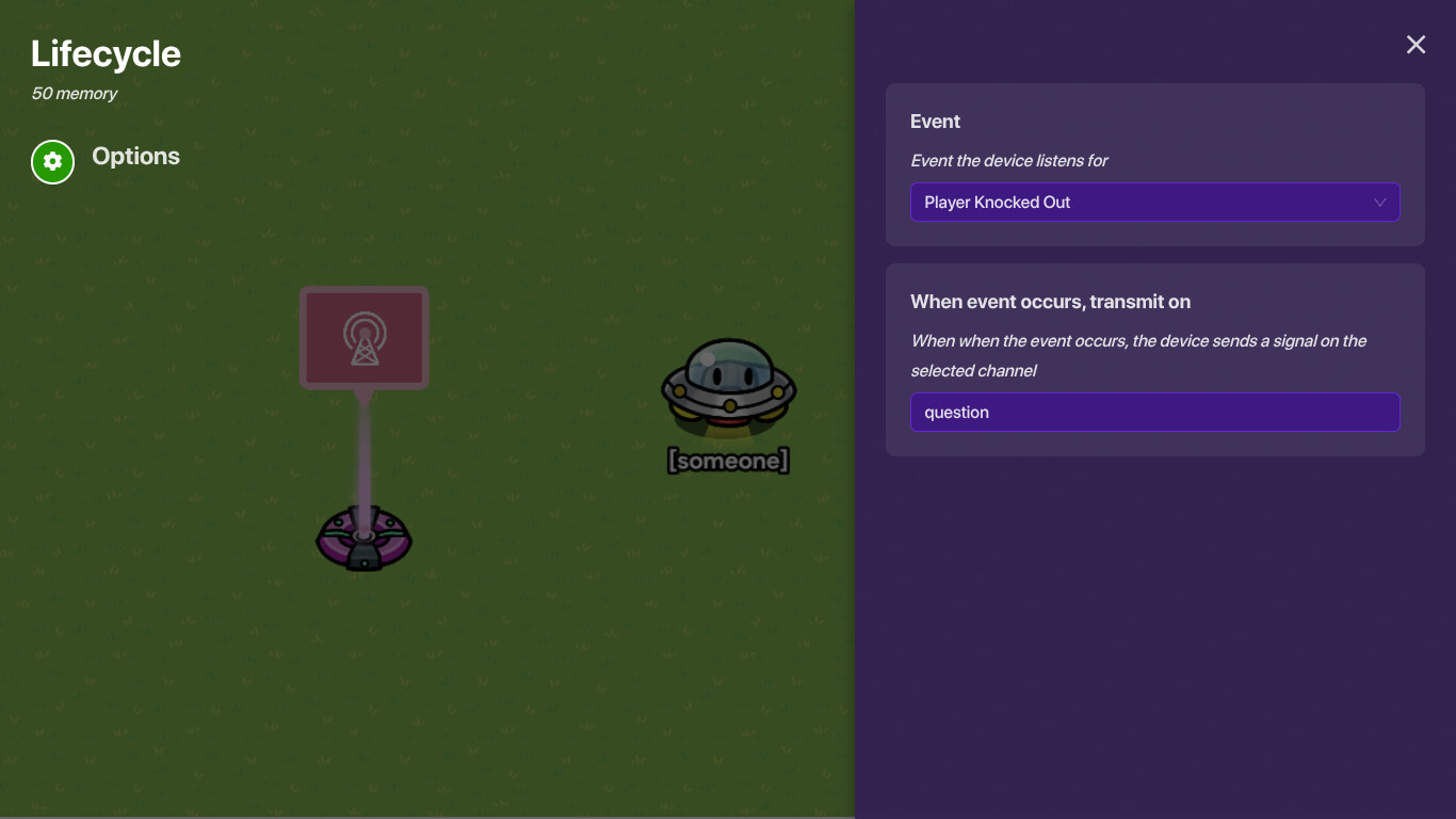 If you want the question screen to open every time you get knocked out, use a lifecycle and questioner with the settings below. Note that you won’t be able to close the screen without answering correctly. As for the score part I’m confused on what you are asking for.