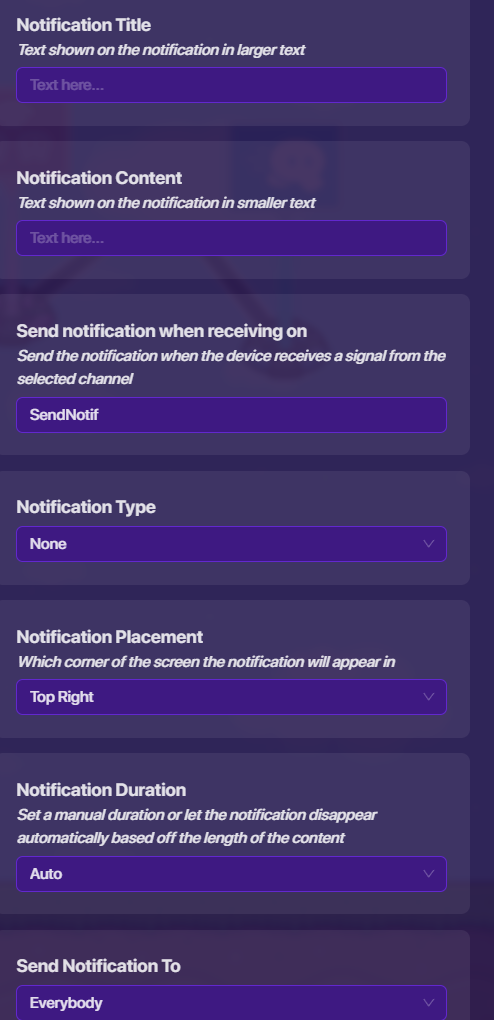 you have to use the notification device, and copy the block code @Hdangerzones showed. Also remember to put the notifications to global