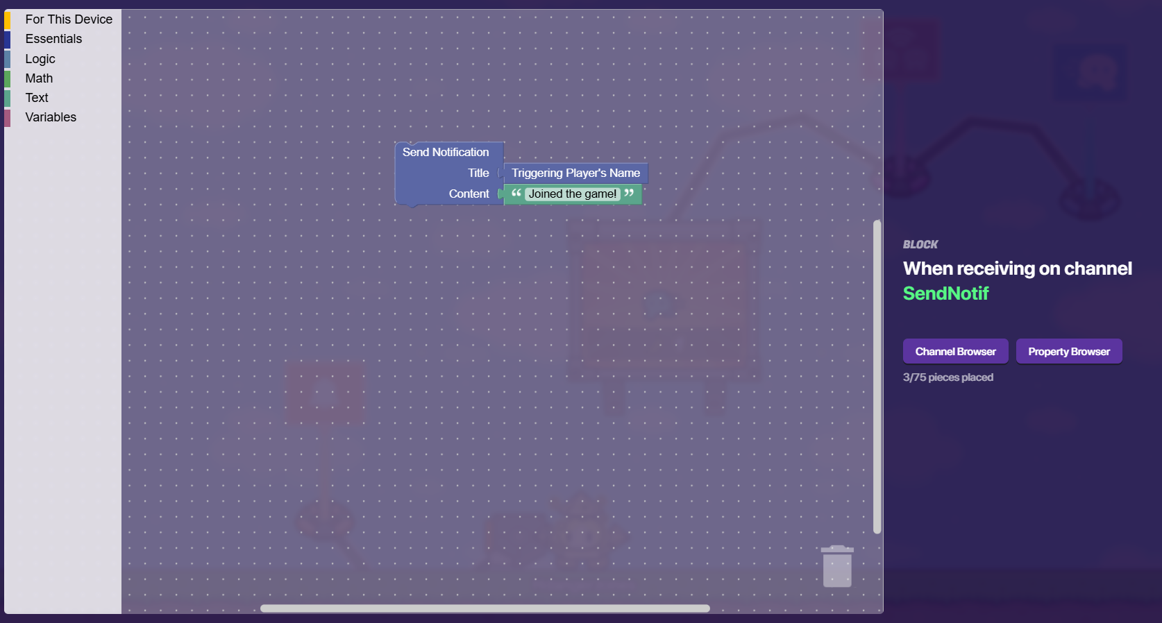 we were talking about name notifactions and how you can use notifaction blocks for this device triggering players name content text joined the game for example and ___ reached summit 2 for example with checkpoints