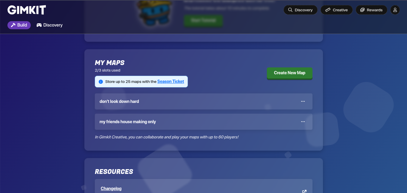 I do not have seasonal ticket but I want to make a don’t look down hard and want it to go on discovery but I do not know any thing about making creative’s in gimkit can someone help me