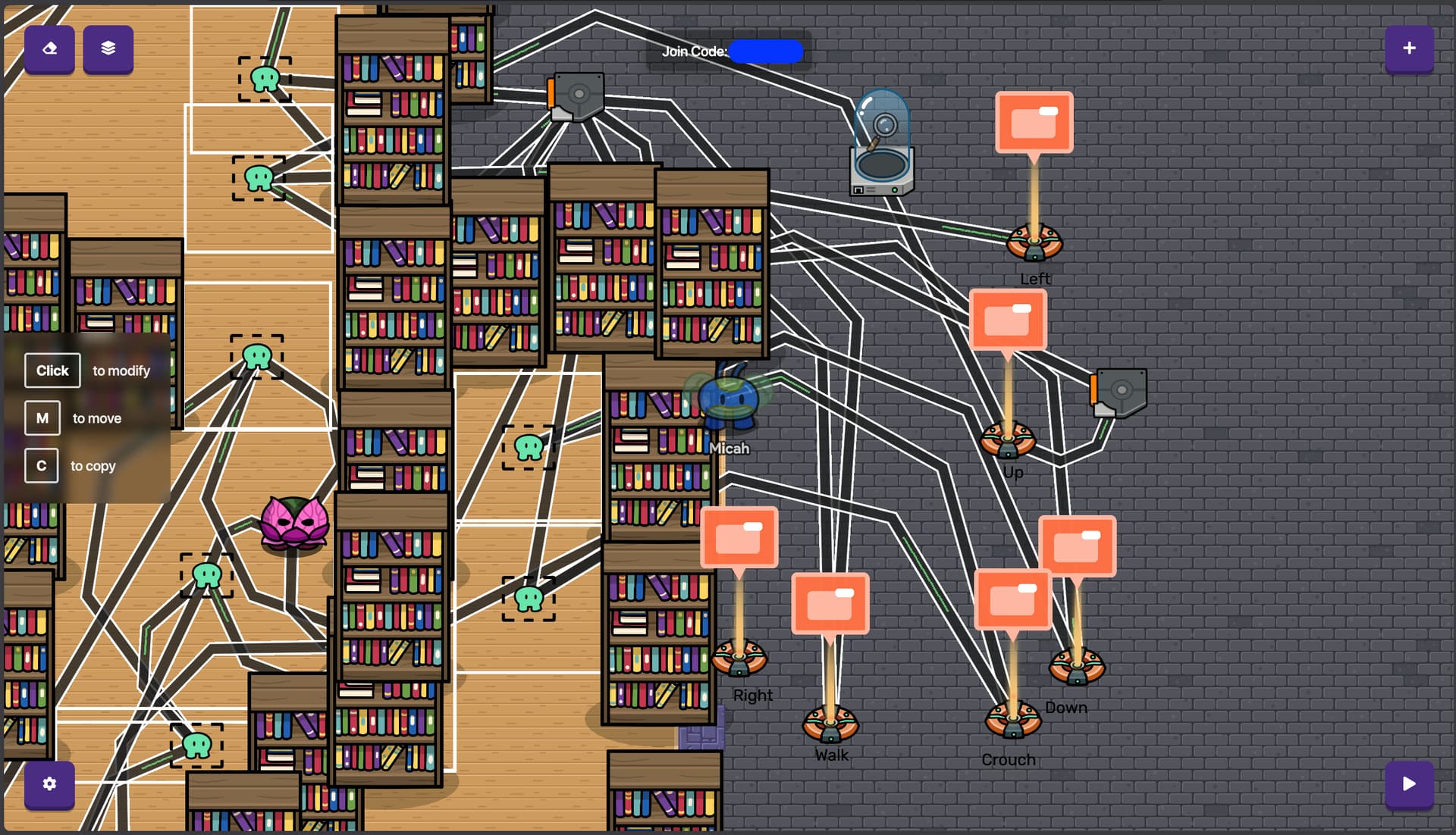 - I use the six buttons because it makes it easier for the player to solve the puzzle than if it was a keypad (8 possible combinations vs 32 possible combinations). I do really like the idea of a keypad though, so I think I’ll use it either in this game somewhere, or in a Mines map.